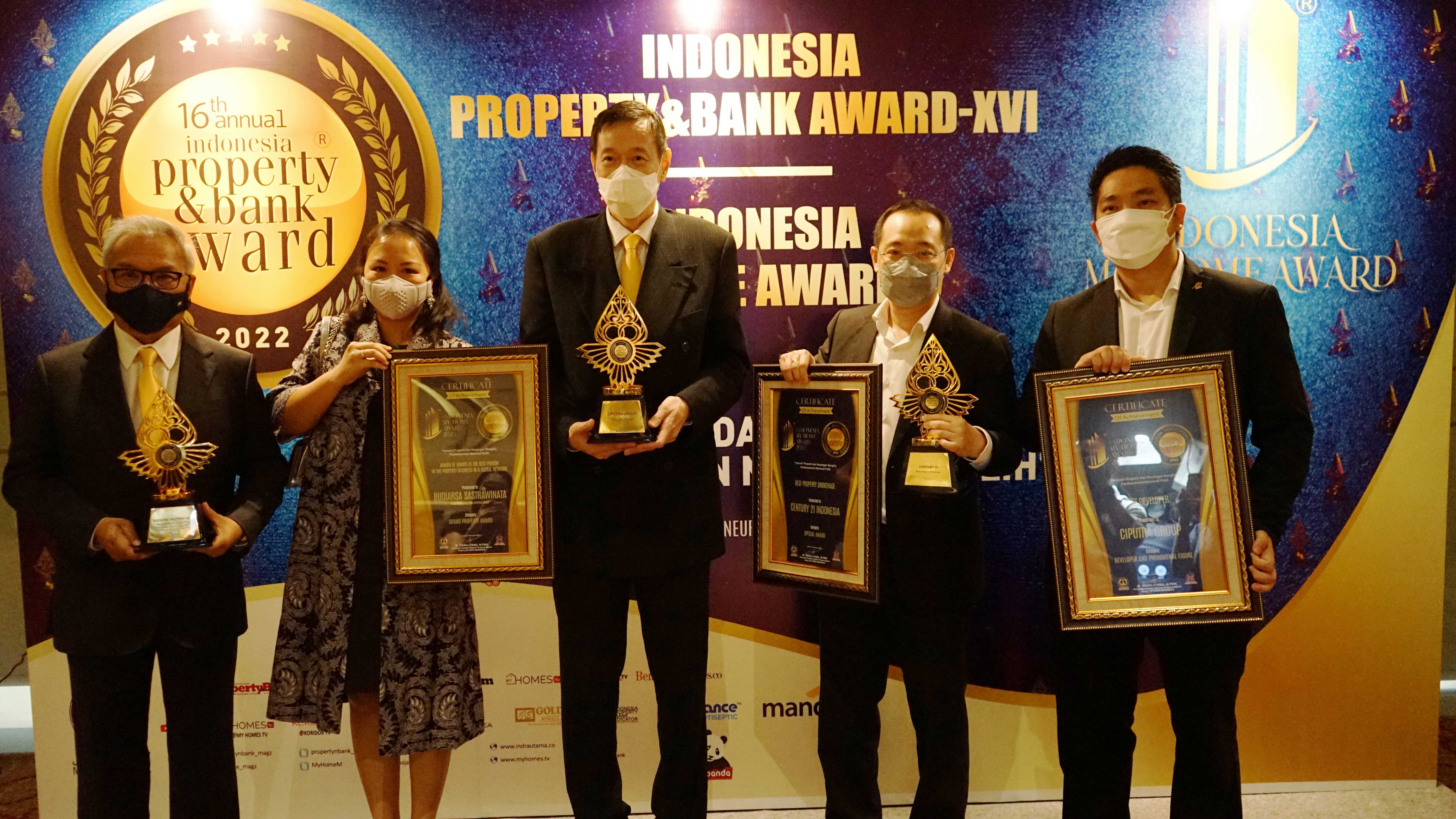 The Indonesia Property & Bank Award 2022 event which took place at the Ciputra Artpreneur Theater, Thursday (24/2), through selective and transparent assessment, awarded Ciputra Group for its reputation in the property development and brokerage sector, including: